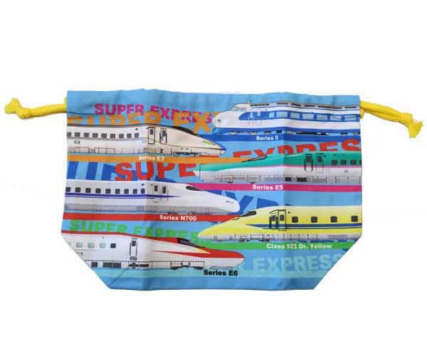 ネコポス便可 新幹線集合ランチ巾着 新幹線 ランチ巾着 巾着袋 N700A ドクターイエロー E5系はやぶさ スーパーこまち E7系かがやき 北陸新幹線 グッズ プラレール靴 プラレール 鉄道 新幹線 お弁当袋