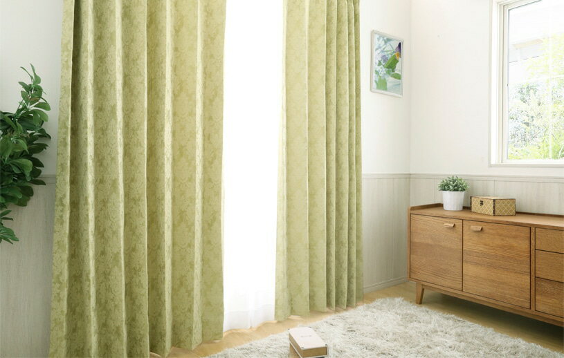 裏地付き商品一覧はこちら 機能: 2級遮光・遮熱・保温・ライトウェーブ加工・ウォッシャブル 付属品: 共布タッセル・アジャスターフックA or B 素材: ポリエステル 100% 対応スタイル: DX 1.5倍ヒダ(2つ山) SDX 2倍ヒダ(3つ山) ⇒スタイルについて詳しくはこちら ※ご注文サイズによって巾継ぎが発生します⇒詳しくはこちら カラーバリエーションの詳細 グリーン(2級遮光) クリックで拡大 アイボリー(3級遮光) 商品ページへ ブルー(2級遮光) 商品ページへ 裏地付ジャカード 〜アデル〜 グリーン