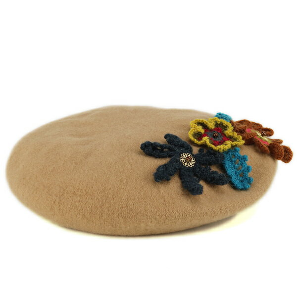 商品説明 ざっくり編まれた花モチーフが愛らしいベレー帽。