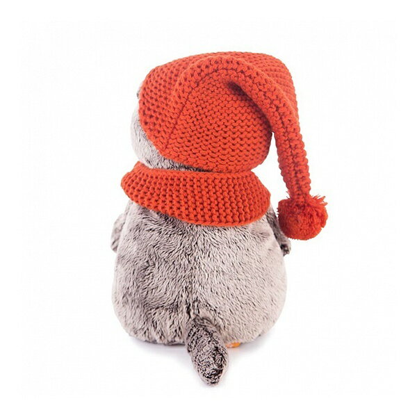 丁寧に細かく編まれた真っ赤なボンボンがついたニット帽とマフラーを付けています。