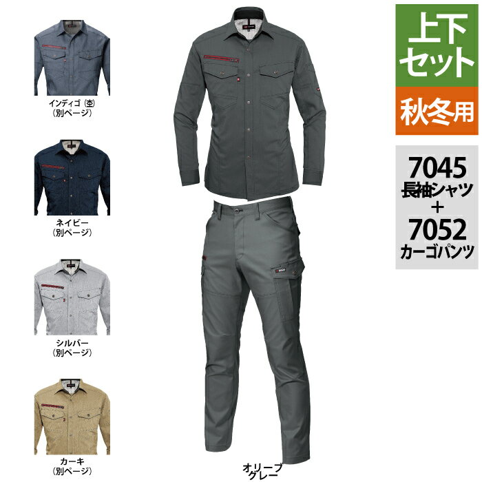 【上下セット送料無料】 ジ—ドラゴン(Z-DRAGON) 長袖シャツ 75204 (SS〜LL) & ノータックカーゴパンツ 75202 (70cm〜88cm) セット (上下同色) 自重堂 作業服 作業着 取寄